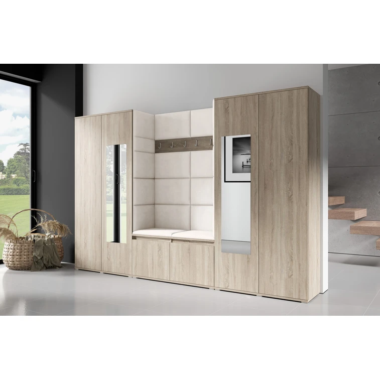 Předsíňová stěna AMI 10 Krémová Dub sonoma Se zrcadlem