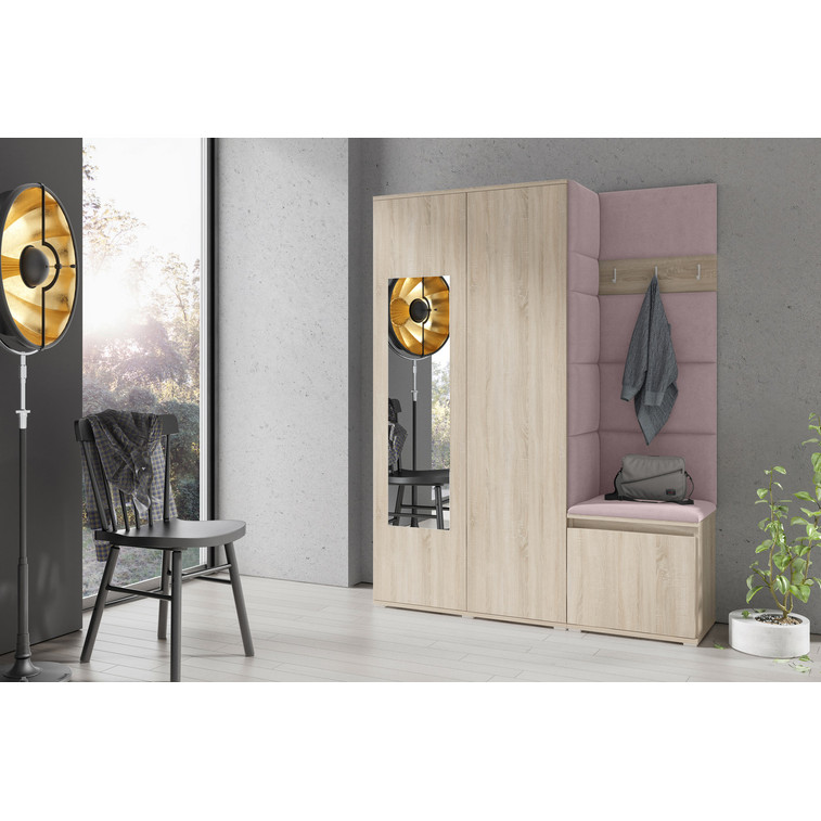Předsíňová stěna AMI 11 Světle růžová Dub sonoma Se zrcadlem