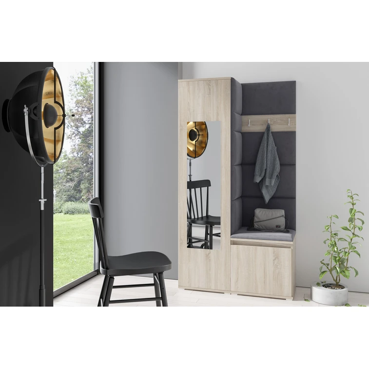 Předsíňová stěna AMI 13 Černá Dub sonoma Se zrcadlem