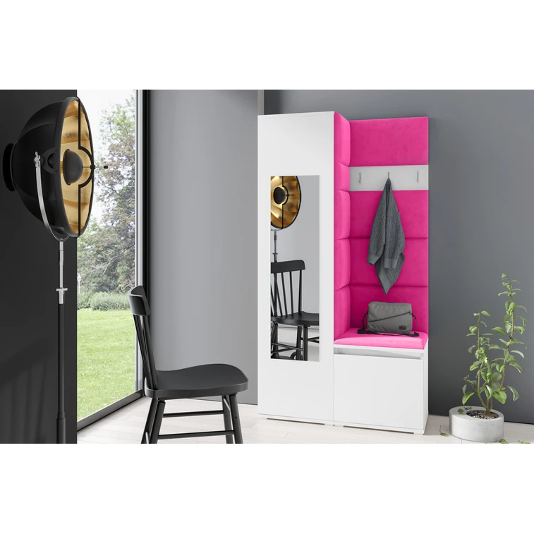Předsíňová stěna AMI 13 Růžová Bílá Se zrcadlem