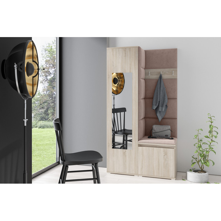 Předsíňová stěna AMI 13 Světle hnědá Dub sonoma Se zrcadlem