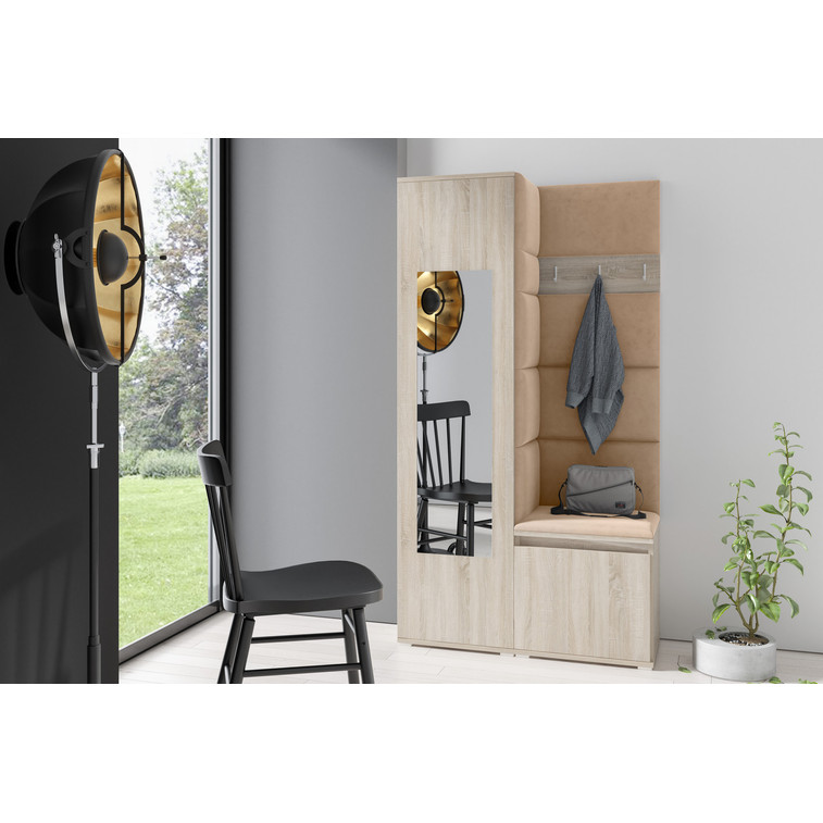 Předsíňová stěna AMI 13 Tmavě béžová Dub sonoma Se zrcadlem