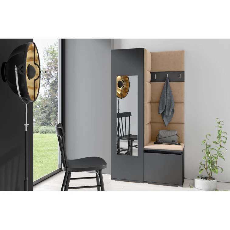 Předsíňová stěna AMI 13 Tmavě béžová Grafit Se zrcadlem
