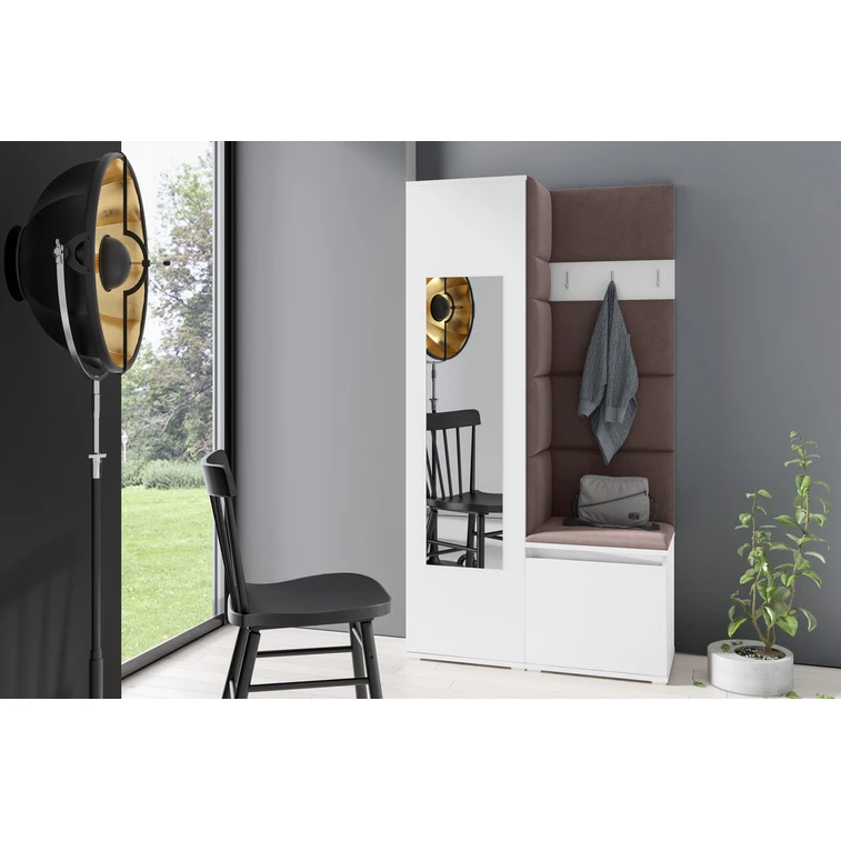 Předsíňová stěna AMI 13 Tmavě hnědá Bílá Se zrcadlem