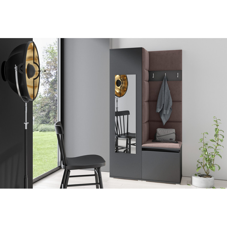 Předsíňová stěna AMI 13 Tmavě hnědá Grafit Se zrcadlem