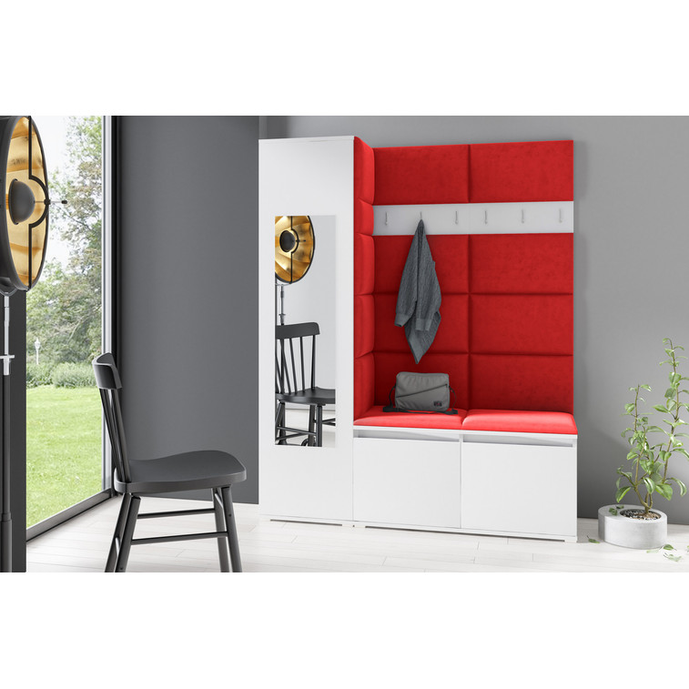 Předsíňová stěna AMI 14 - se zrcadlem Bílá Červená