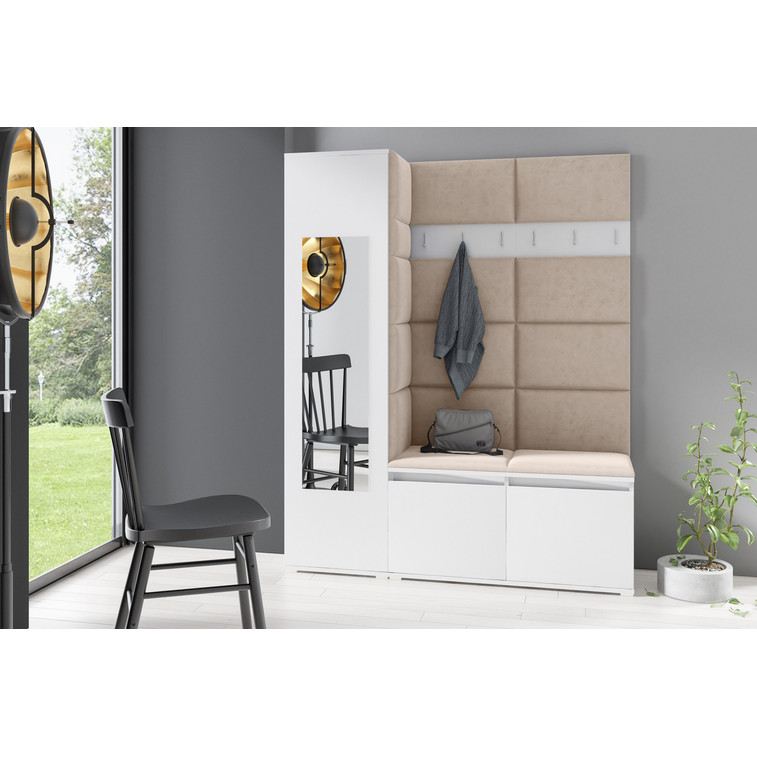 Předsíňová stěna AMI 14 - se zrcadlem Bílá Světle béžová