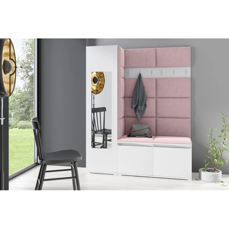 Předsíňová stěna AMI 14 - se zrcadlem Bílá Světle růžová