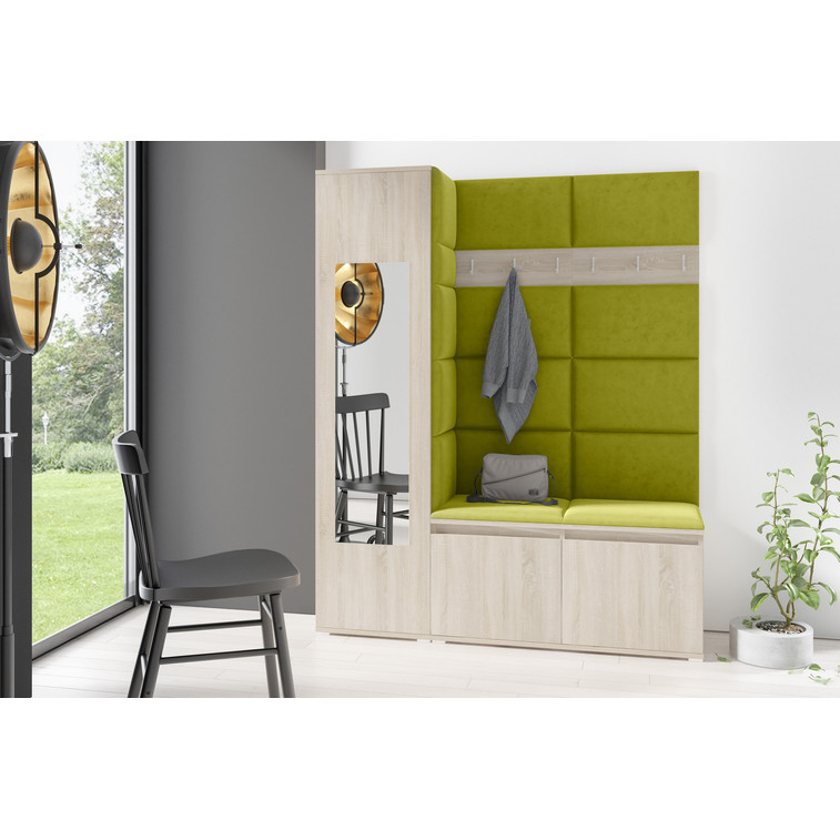 Předsíňová stěna AMI 14 - se zrcadlem Dub sonoma Zelená