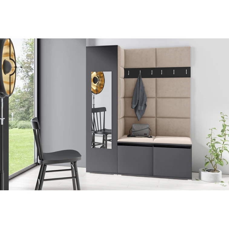 Předsíňová stěna AMI 14 - se zrcadlem Grafit Světle béžová