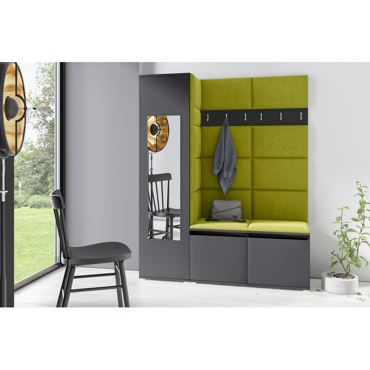 Předsíňová stěna AMI 14 - se zrcadlem Grafit Zelená
