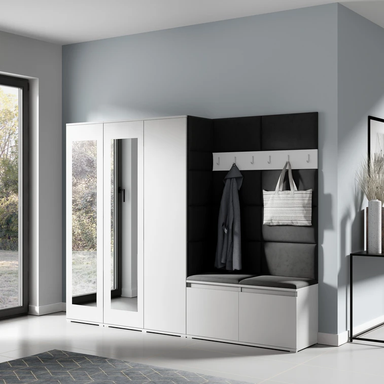 Předsíňová stěna AMI 15 - se zrcadlem Černá Bílá