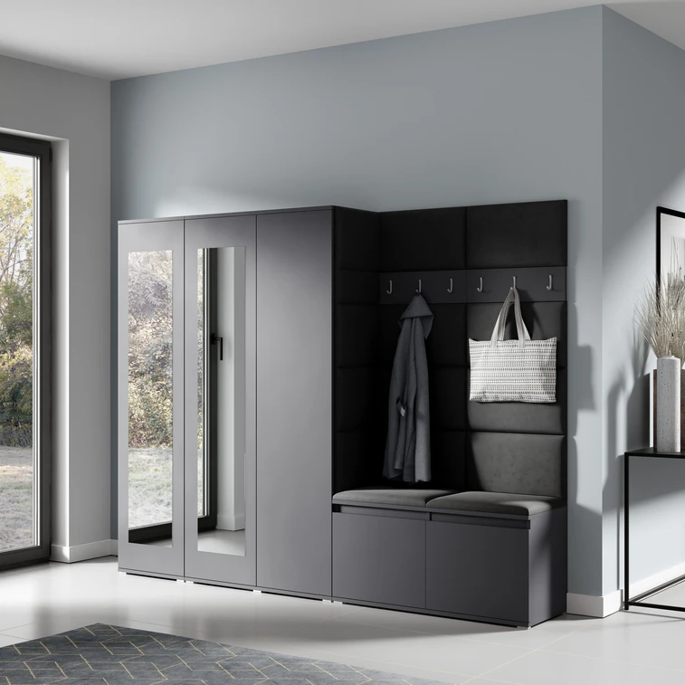 Předsíňová stěna AMI 15 - se zrcadlem Černá Grafit