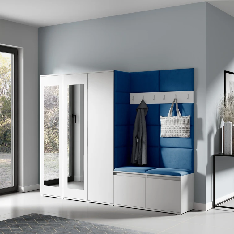 Předsíňová stěna AMI 15 - se zrcadlem Tmavě modrá Bílá