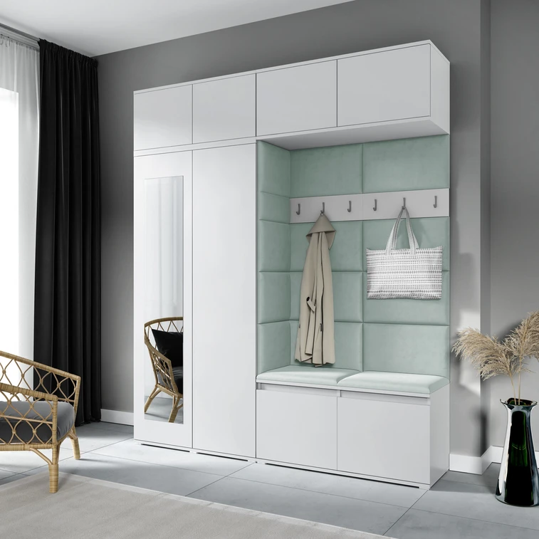 Předsíňová stěna AMI 16 - se zrcadlem Mátová Bílá