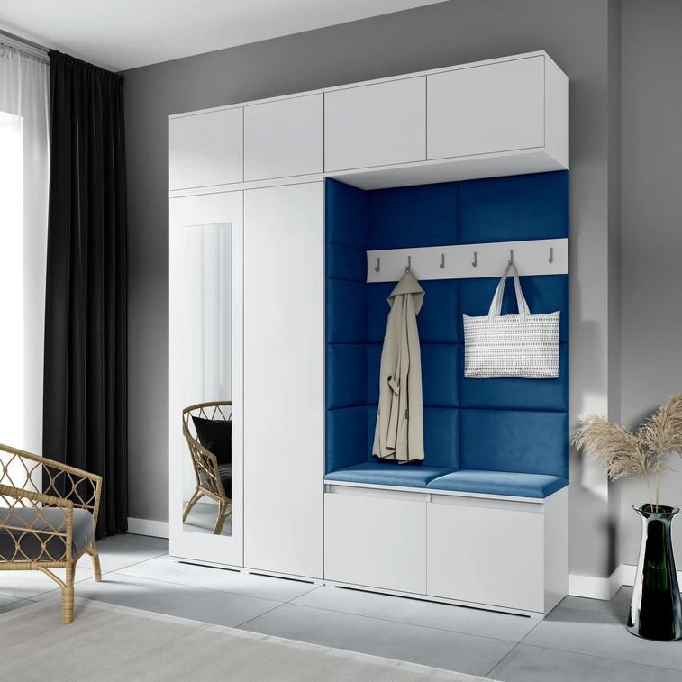Předsíňová stěna AMI 16 - se zrcadlem Tmavě modrá Bílá