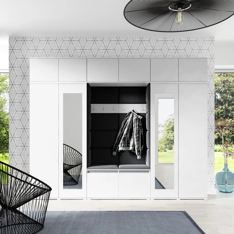 Předsíňová stěna AMI 17 - se zrcadlem Černá Bílá