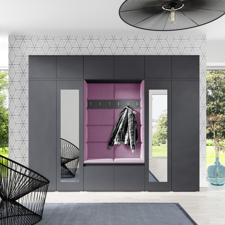 Předsíňová stěna AMI 17 - se zrcadlem Fialová Grafit