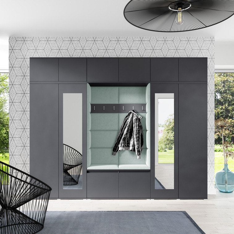 Předsíňová stěna AMI 17 - se zrcadlem Mátová Grafit