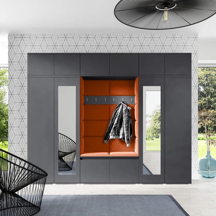 Předsíňová stěna AMI 17 - se zrcadlem Oranžová Grafit