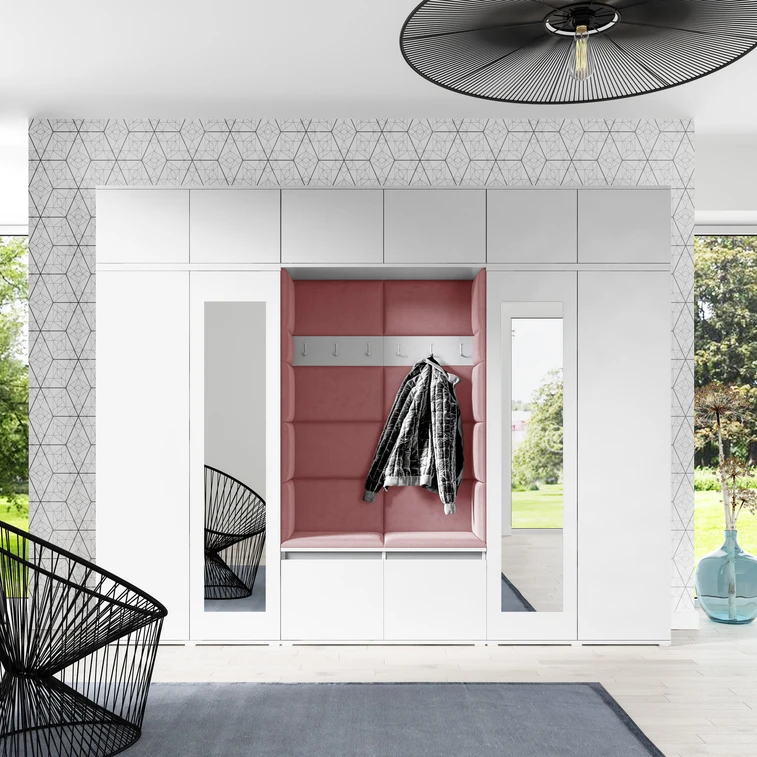 Předsíňová stěna AMI 17 - se zrcadlem Světle růžová Bílá