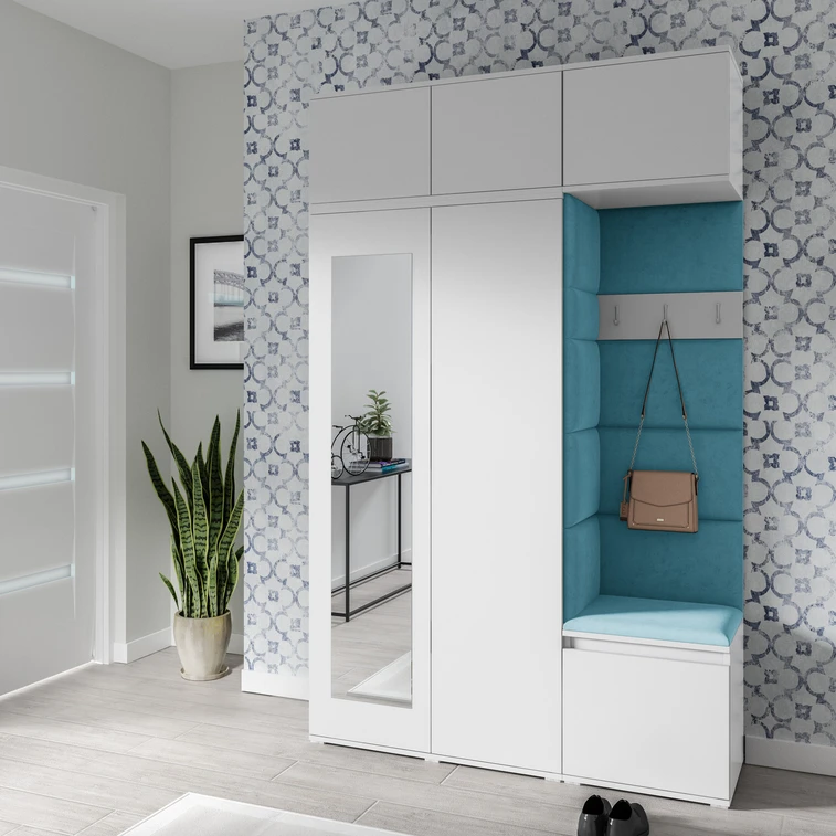 Předsíňová stěna AMI 18 - se zrcadlem Azurová Bílá