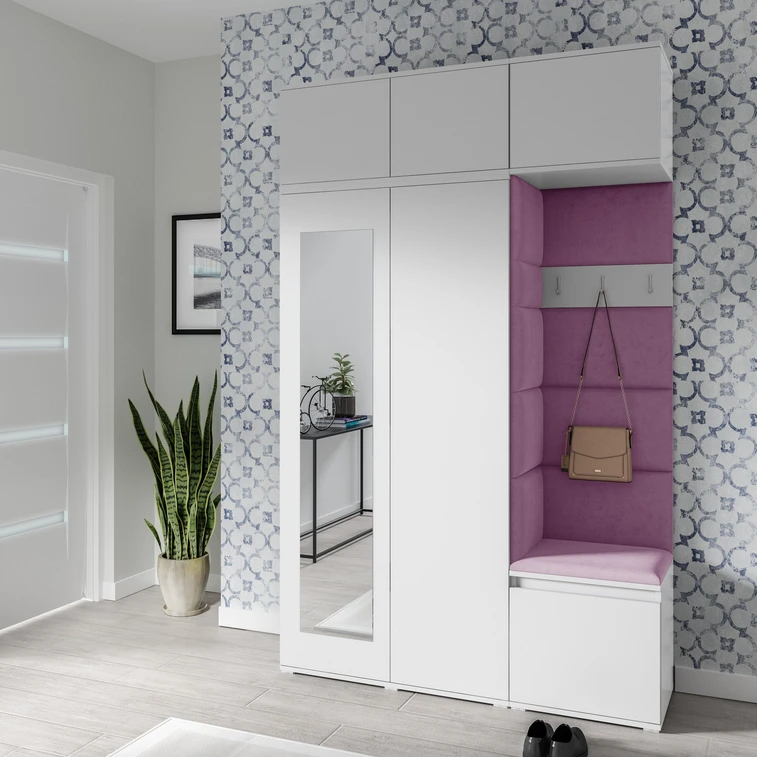 Předsíňová stěna AMI 18 - se zrcadlem Fialová Bílá
