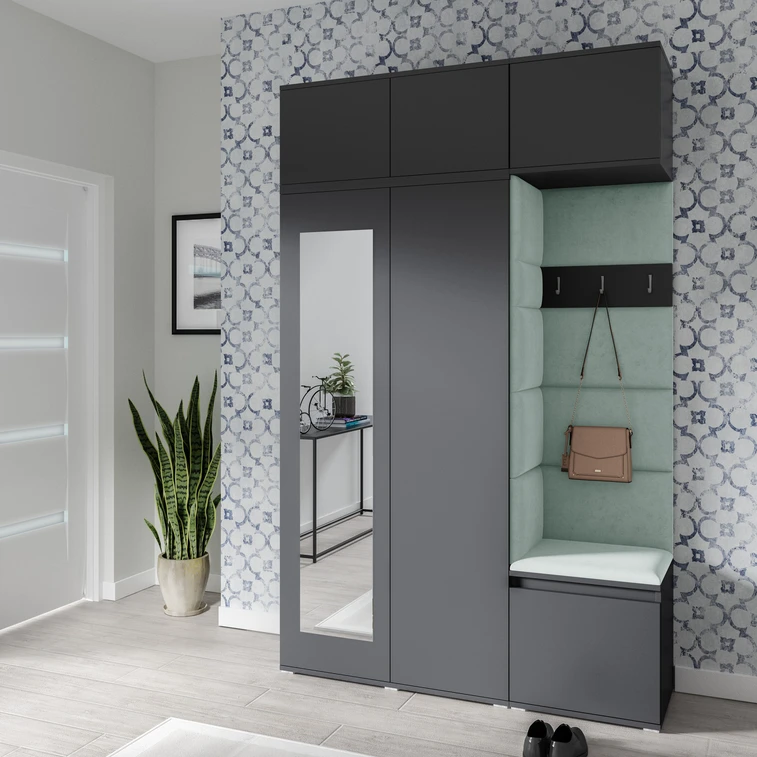 Předsíňová stěna AMI 18 - se zrcadlem Mátová Grafit