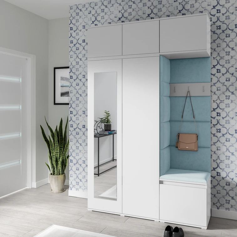 Předsíňová stěna AMI 18 - se zrcadlem Modrá Bílá