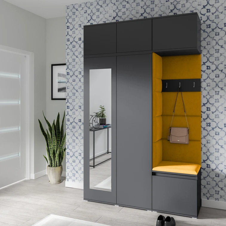 Předsíňová stěna AMI 18 - se zrcadlem Žlutá Grafit