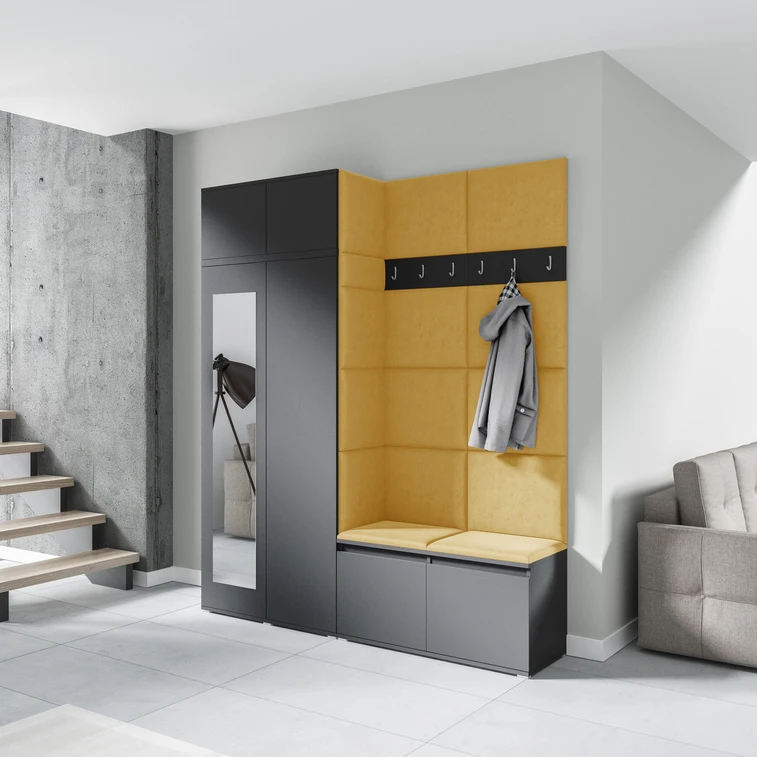 Předsíňová stěna AMI 19 - se zrcadlem Světle žlutá Grafit
