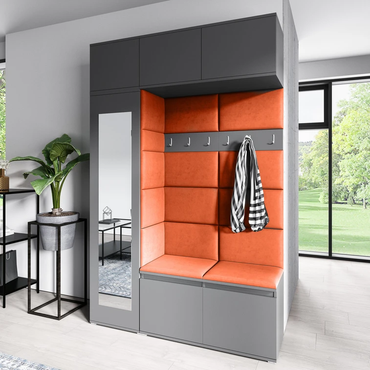 Předsíňová stěna AMI 21 - se zrcadlem Oranžová Grafit