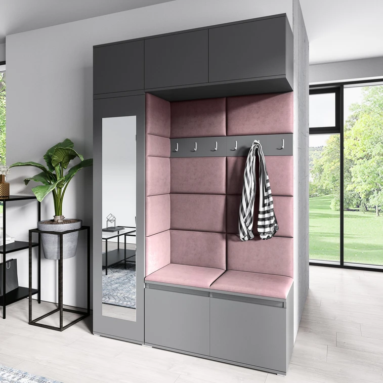 Předsíňová stěna AMI 21 - se zrcadlem Světle růžová Grafit