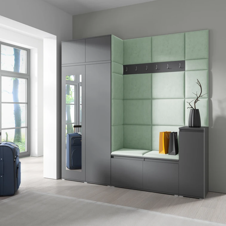 Předsíňová stěna AMI 26 - se zrcadlem Mátová Grafit