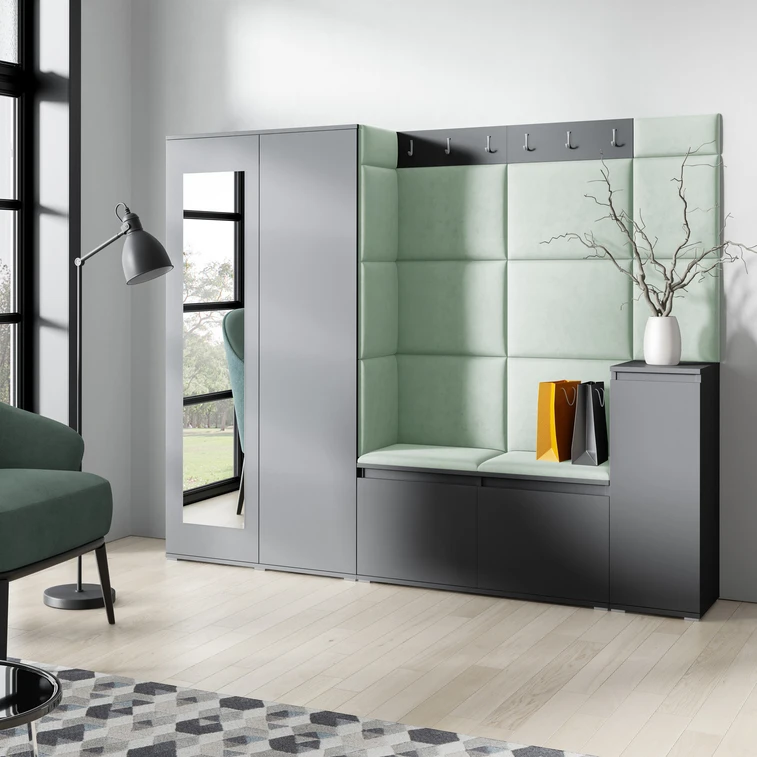Předsíňová stěna AMI 27 - se zrcadlem Mátová Grafit