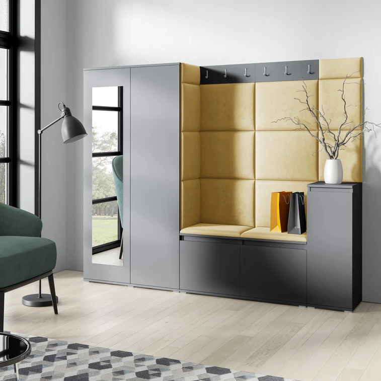 Předsíňová stěna AMI 27 - se zrcadlem Světle žlutá Grafit