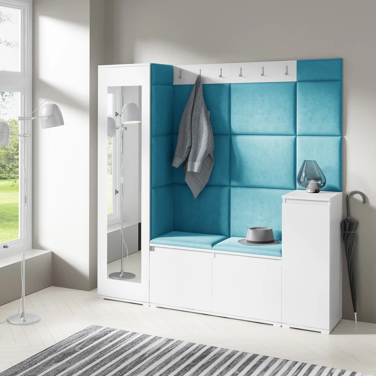 Předsíňová stěna AMI 28 - se zrcadlem Azurová Bílá