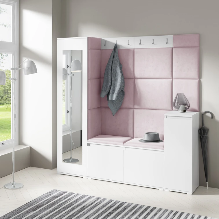 Předsíňová stěna AMI 28 - se zrcadlem Růžová Bílá
