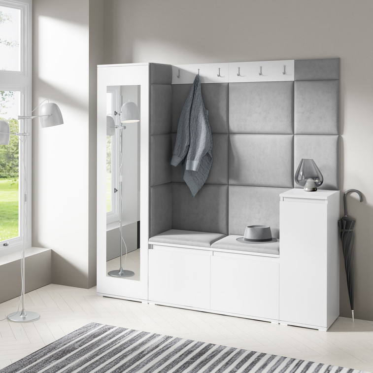Předsíňová stěna AMI 28 - se zrcadlem Šedá Bílá
