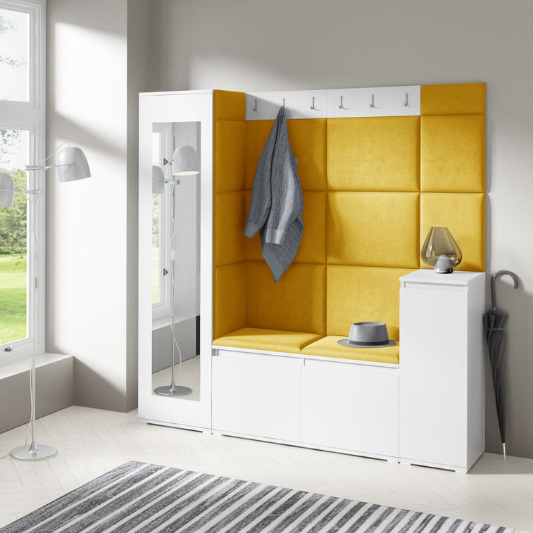 Předsíňová stěna AMI 28 - se zrcadlem Žlutá Bílá