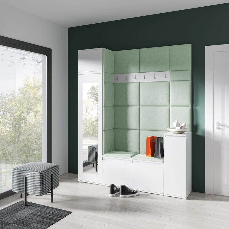 Předsíňová stěna AMI 29 - se zrcadlem Mátová Bílá