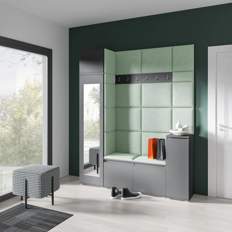 Předsíňová stěna AMI 29 - se zrcadlem Mátová Grafit