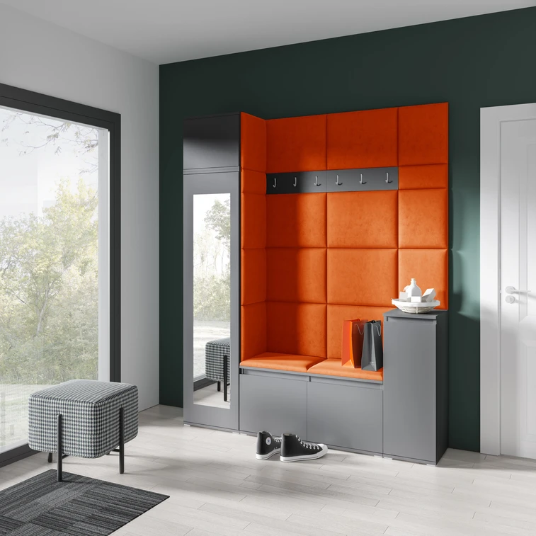 Předsíňová stěna AMI 29 - se zrcadlem Oranžová Grafit