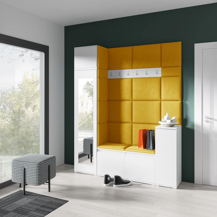Předsíňová stěna AMI 29 - se zrcadlem Žlutá Bílá