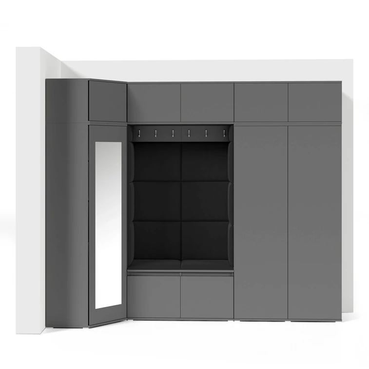 Moderní předsíňová stěna Ami 39, je praktický prvek do vstupních prostor vašeho domu. Předsíňová stěna obsahuje čalouněné panely, které se montují přímo na stěnu za pomoci lepidla.