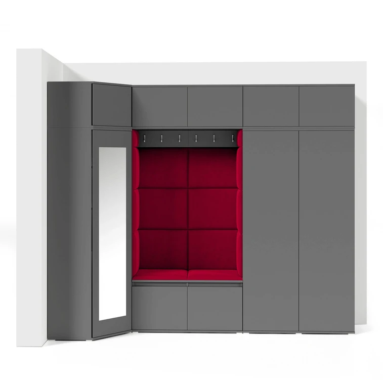 Moderní předsíňová stěna Ami 39, je praktický prvek do vstupních prostor vašeho domu. Předsíňová stěna obsahuje čalouněné panely, které se montují přímo na stěnu za pomoci lepidla.