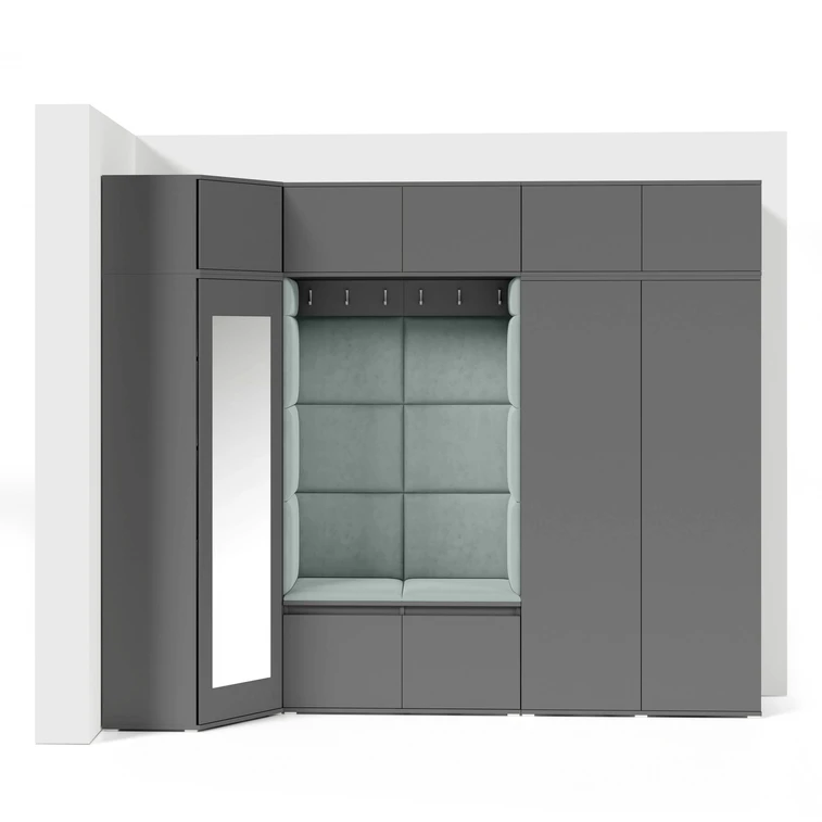 Moderní předsíňová stěna Ami 39, je praktický prvek do vstupních prostor vašeho domu. Předsíňová stěna obsahuje čalouněné panely, které se montují přímo na stěnu za pomoci lepidla.