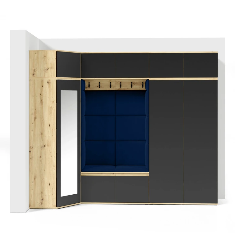 Předsíňová stěna AMI 39 Námořnická modrá Dub artisan + Černá