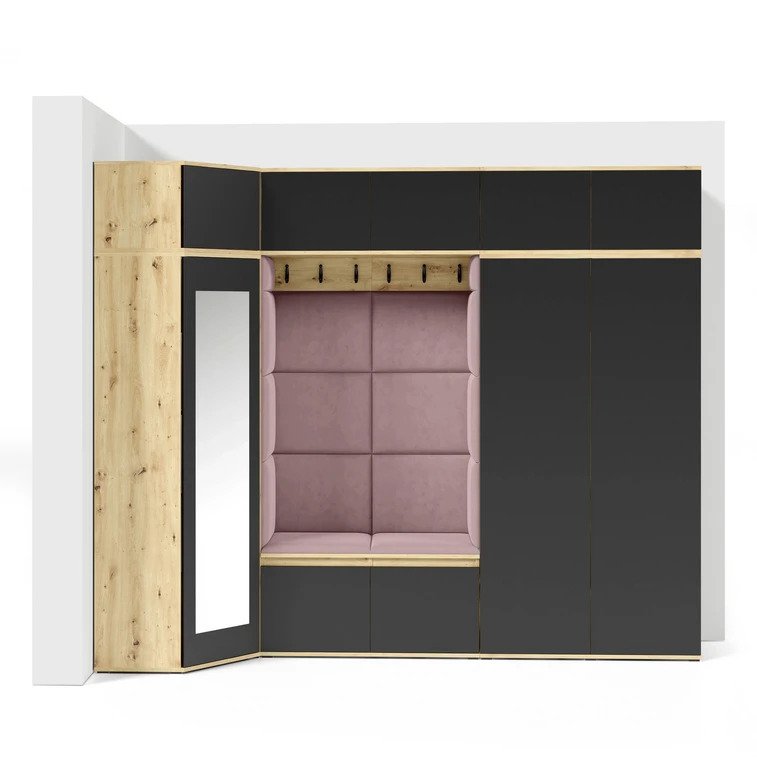 Předsíňová stěna AMI 39 Růžová Dub artisan + Černá