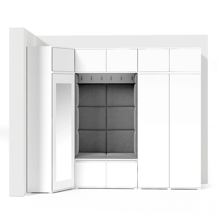 Moderní předsíňová stěna Ami 39, je praktický prvek do vstupních prostor vašeho domu. Předsíňová stěna obsahuje čalouněné panely, které se montují přímo na stěnu za pomoci lepidla.